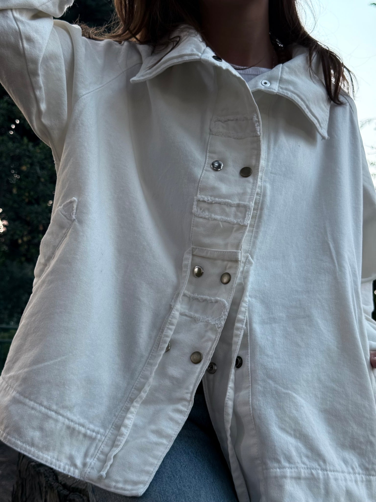 Chaqueta de gabardina, 100% algodón con detalles en cuero.