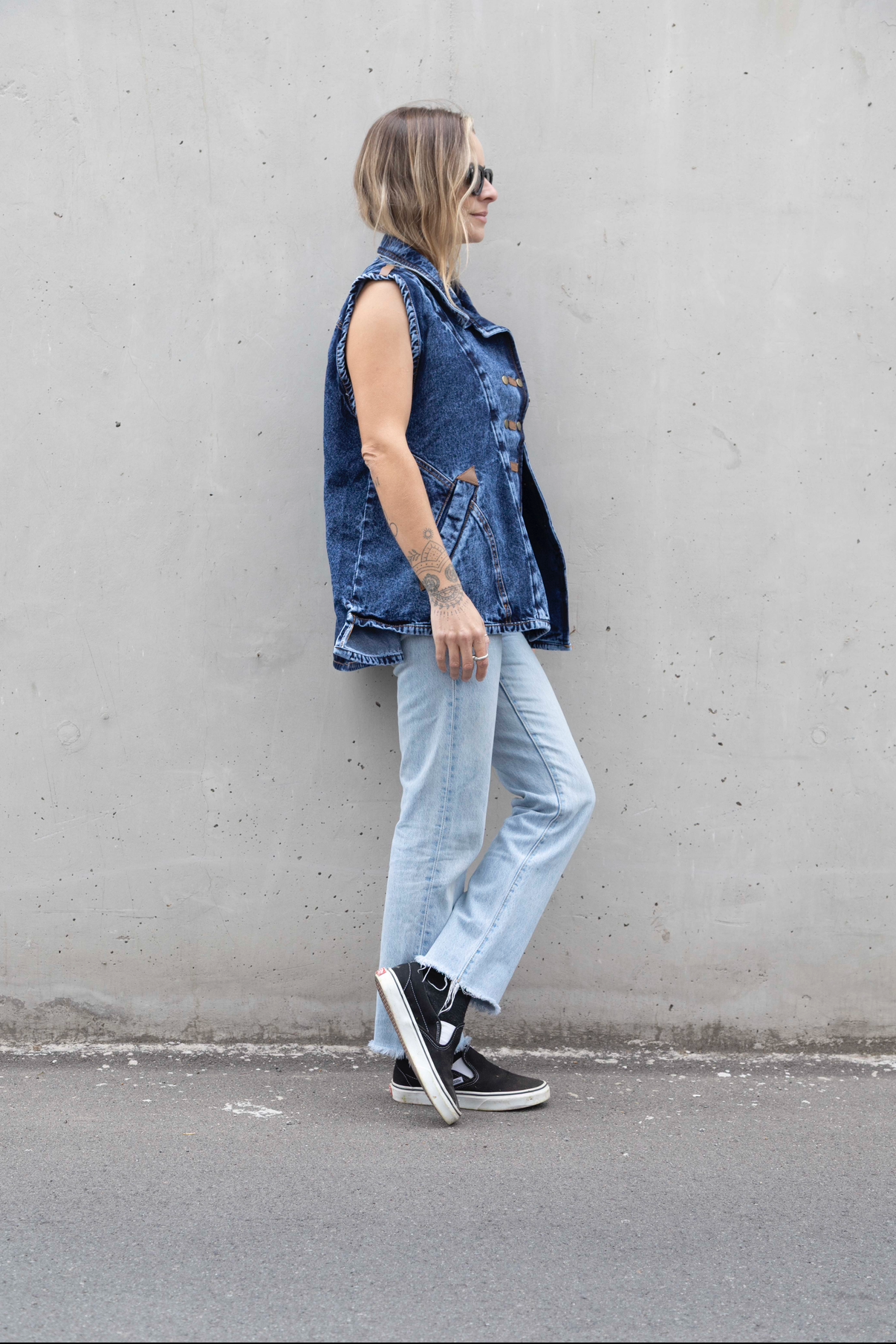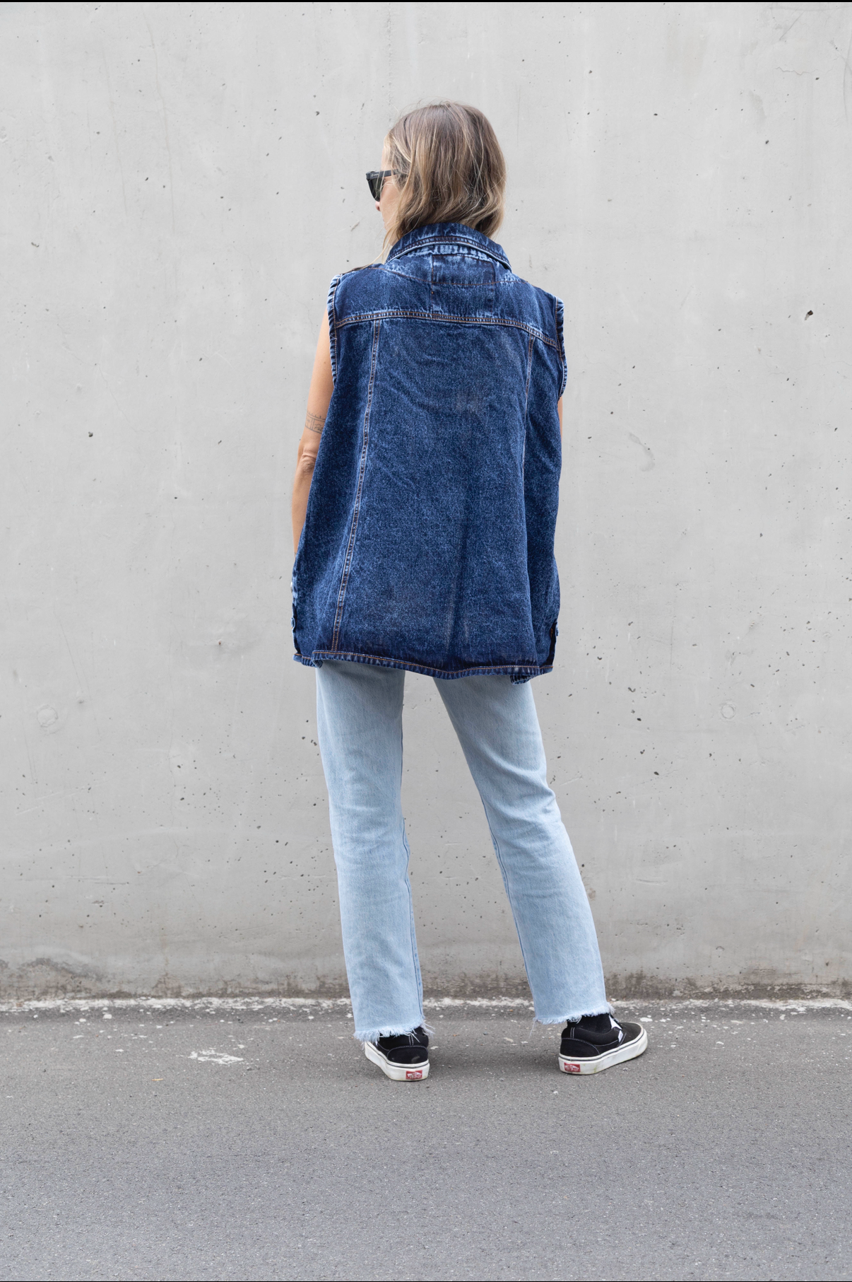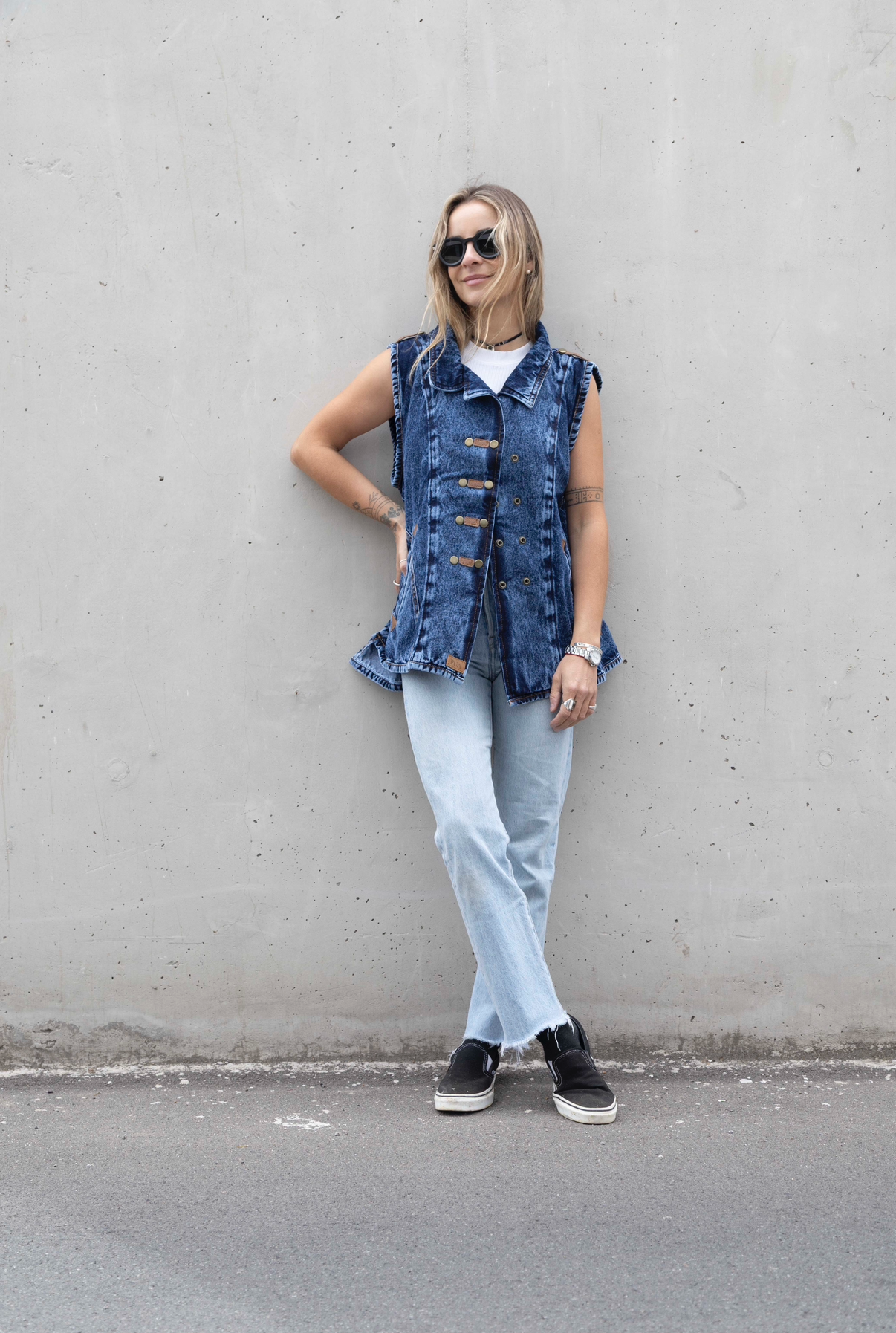 Una chaqueta sin mangas es siempre una buena opción para días de calor y nuestra Aydin es ideal para un look casual y con carácter. Corte asimétrico y bolsillos laterales que mantienen la silueta limpia y funcional. Broches metálicos con detalles en cuero que contrastan con la prenda.