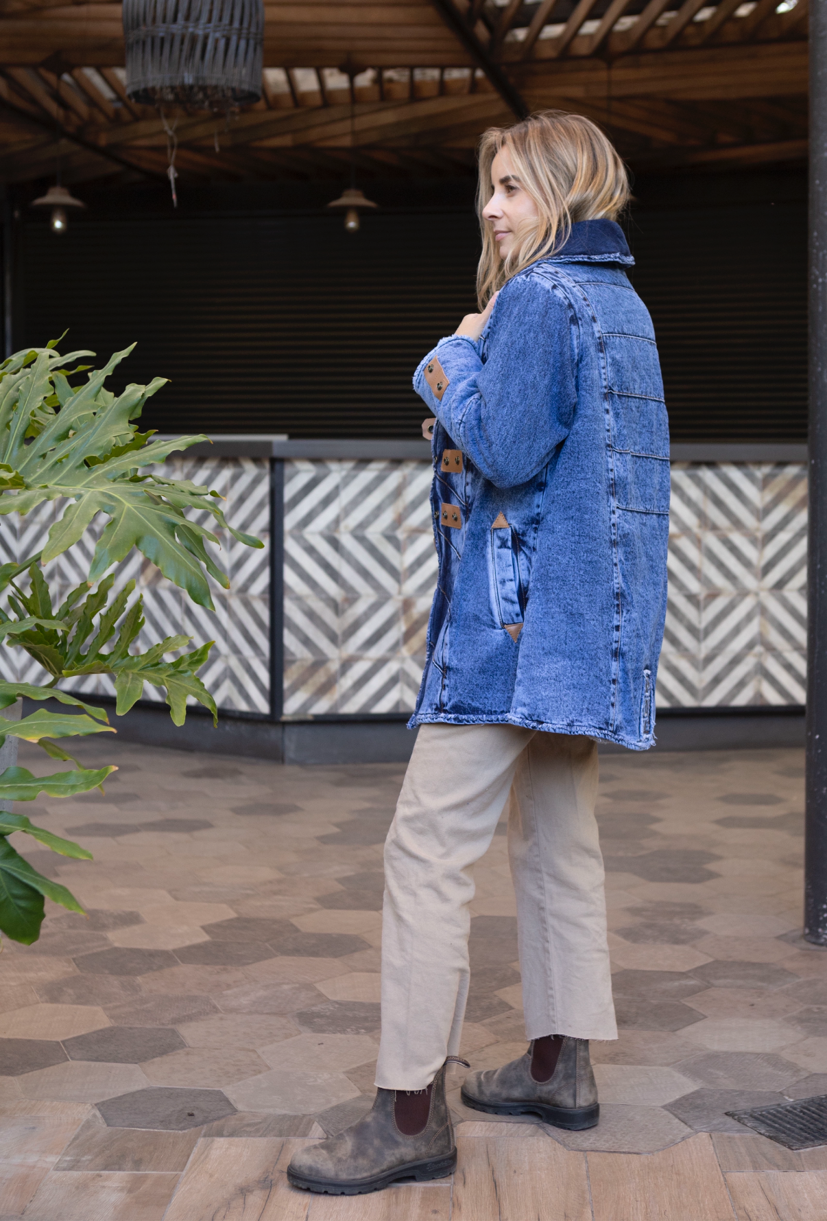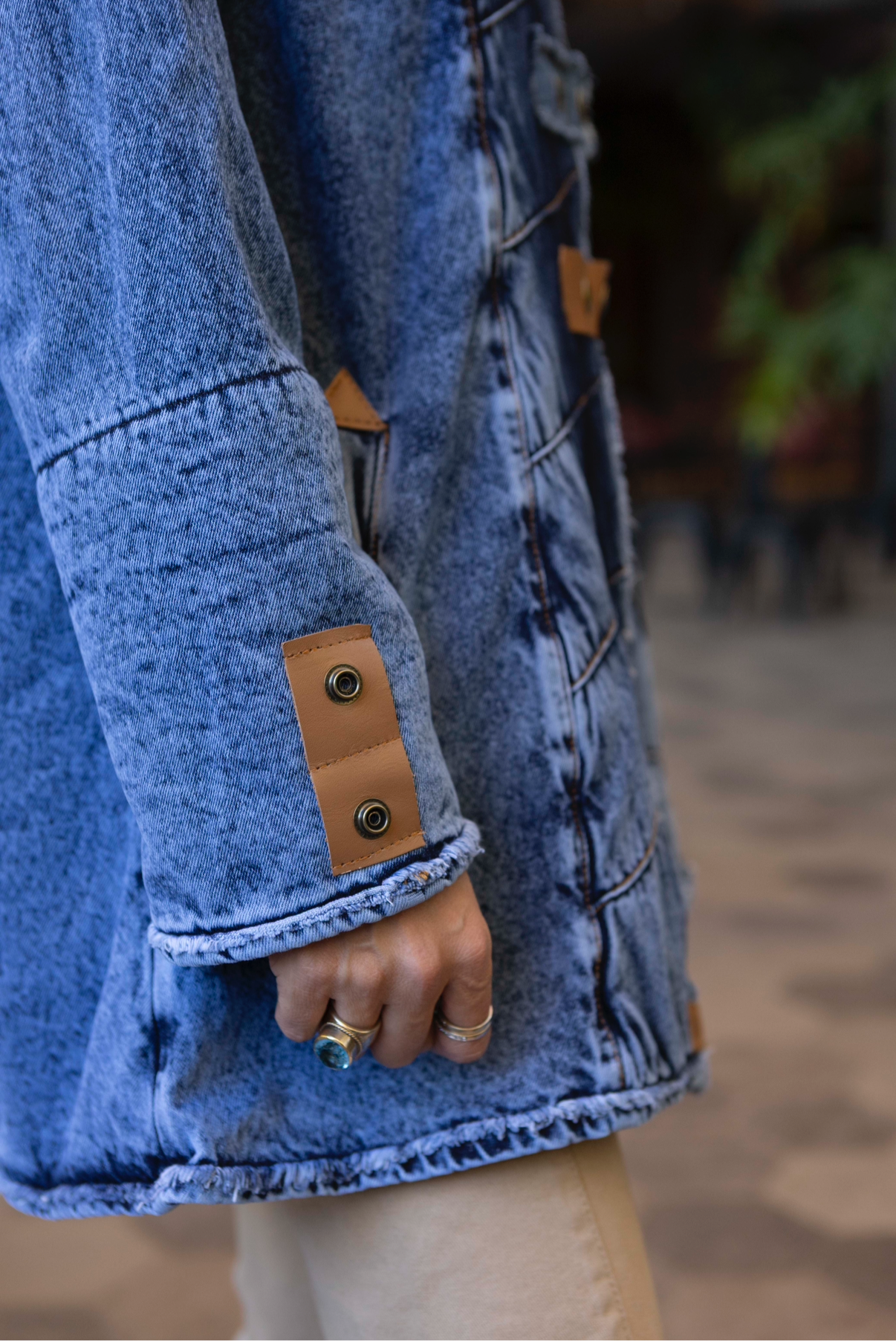Chaqueta de mezclilla, 100% algodón con detalles en cuero y lana