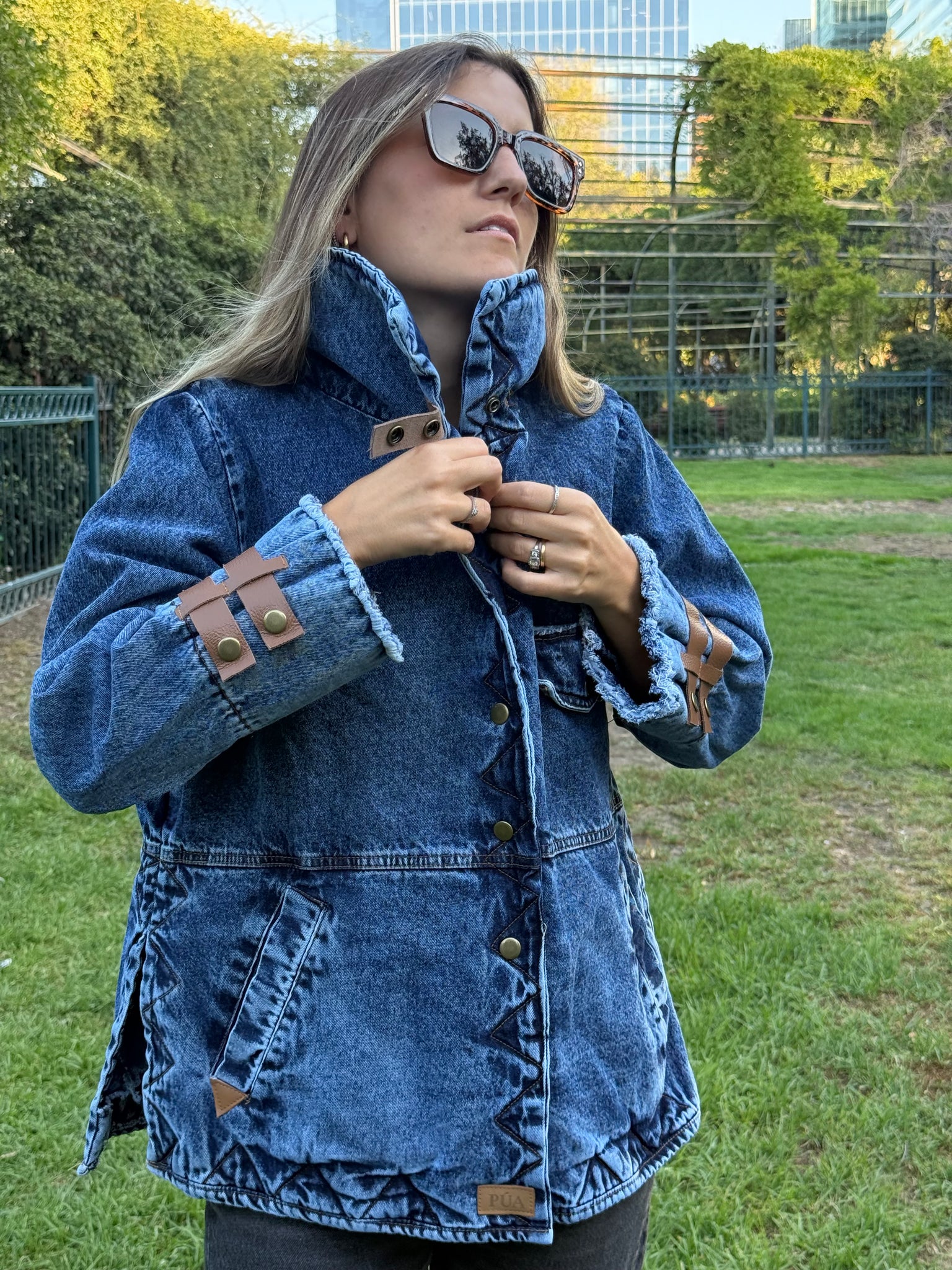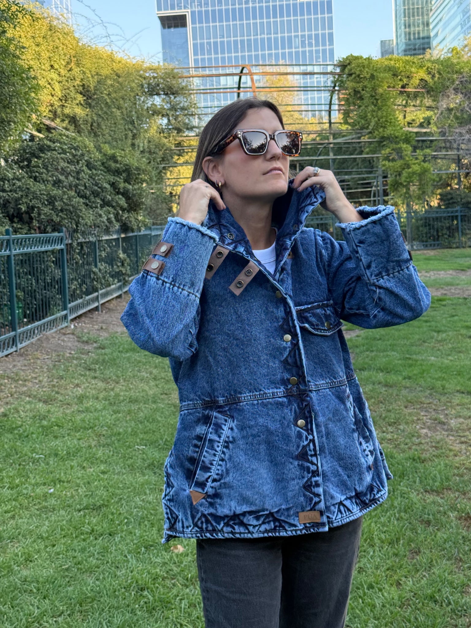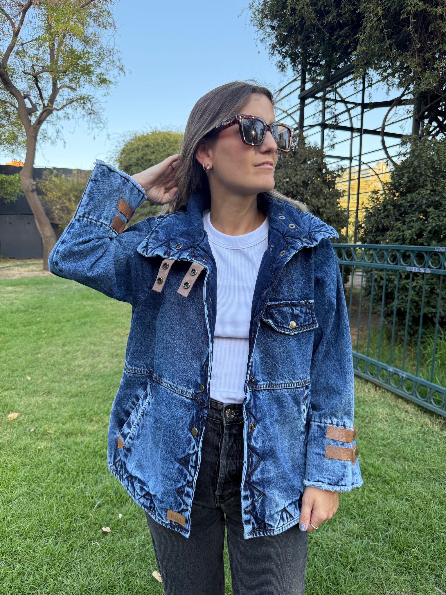Chaqueta de mezclilla 100% algodón, con detalles en cuero que sorprenderán