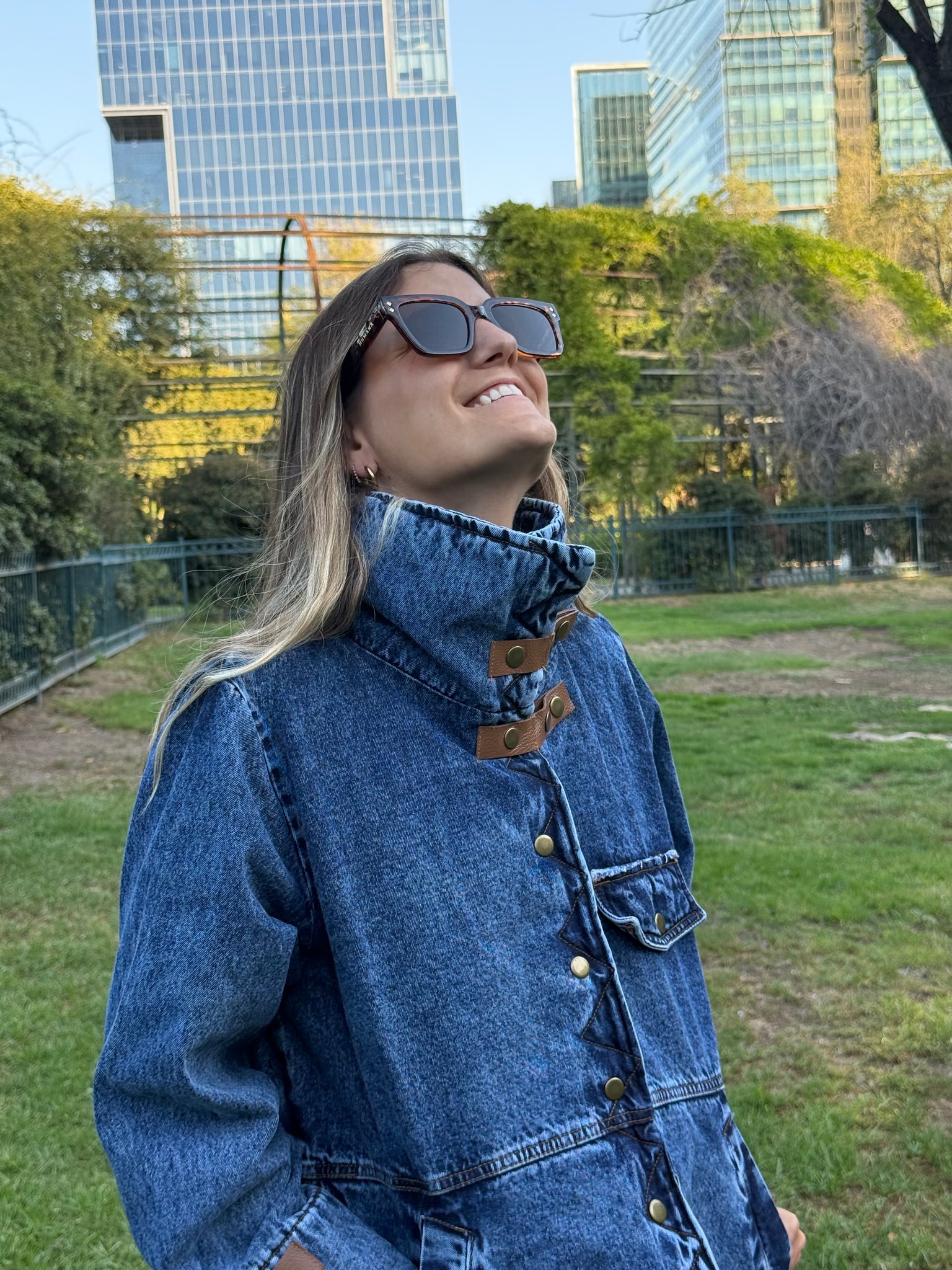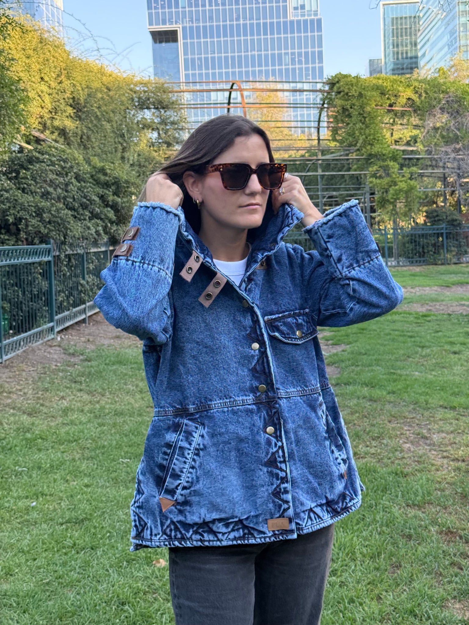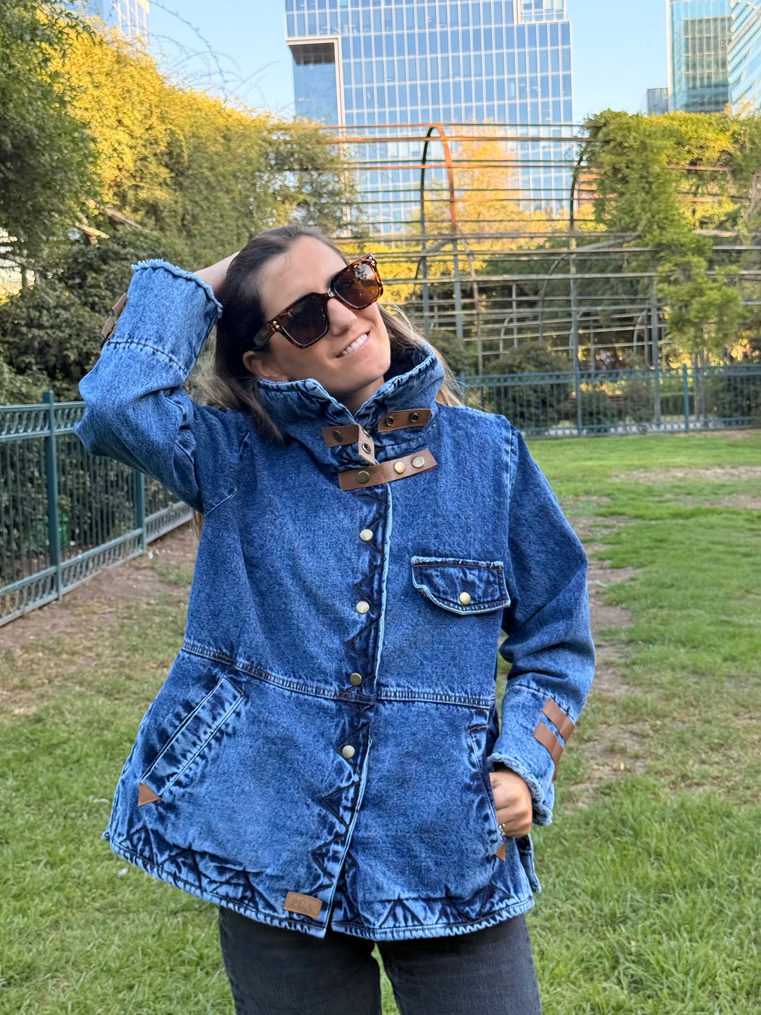 Chaqueta de mezclilla 100% algodón, con detalles en cuero que sorprenderán